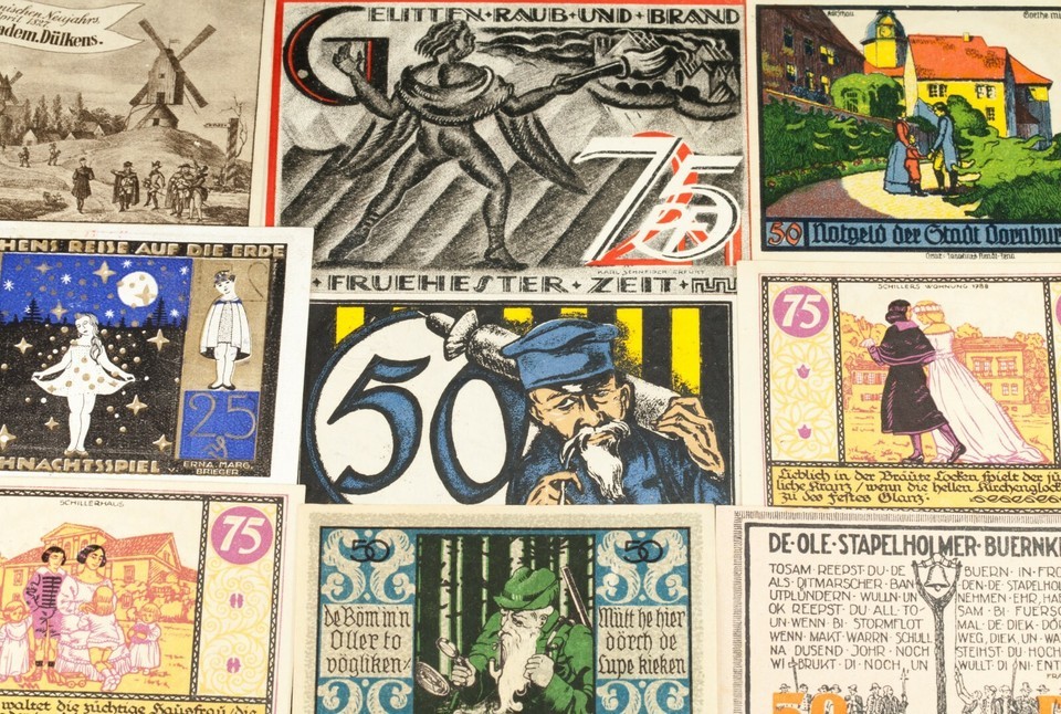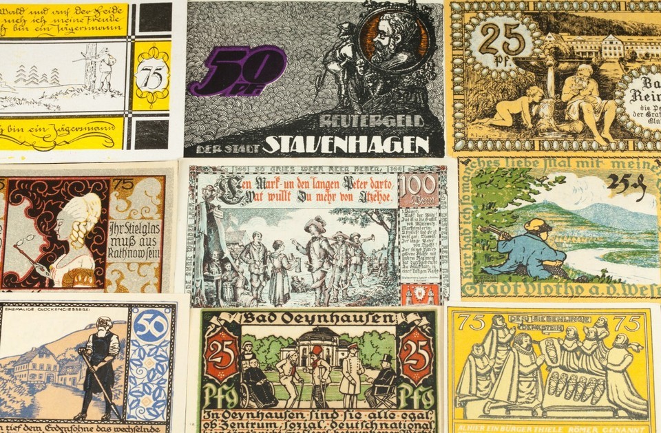 Ce lot comprendra 25 notes de notgeld individuelles d'Allemagne apres la Premiere Guerre mondiale. Valeurs faciales entre 5 pfennig a 5 marque. Theme des gens; groupes et individus.