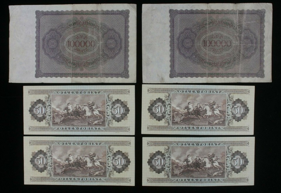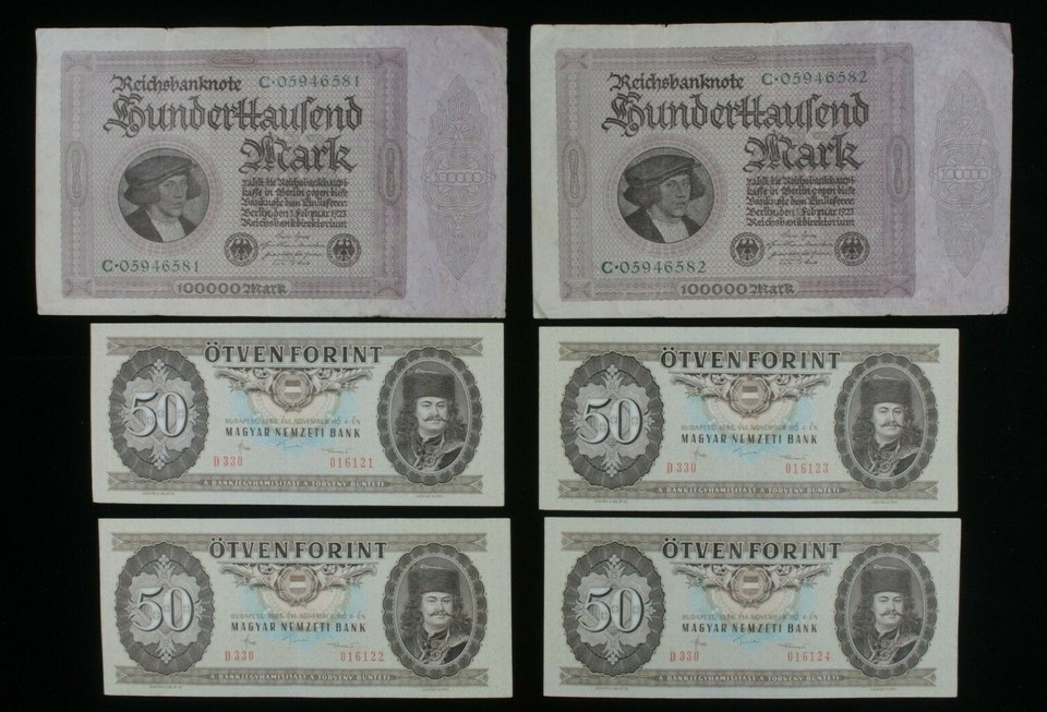 Sequential Banknotes Lot 1923 Germany 100,000 Mark & 1986 Hungary 50 Forint- ...