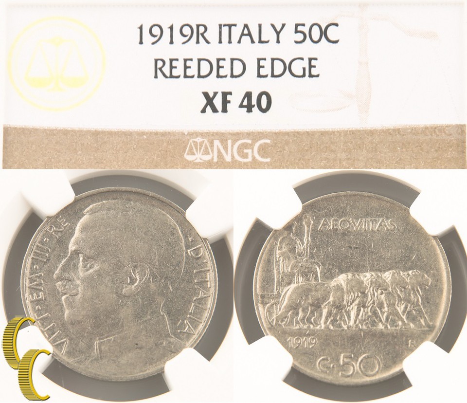 1919-R Italie 50 Centesimi Edge rosed (NGC XF40) italien 50c cent # 61,2 RARE!