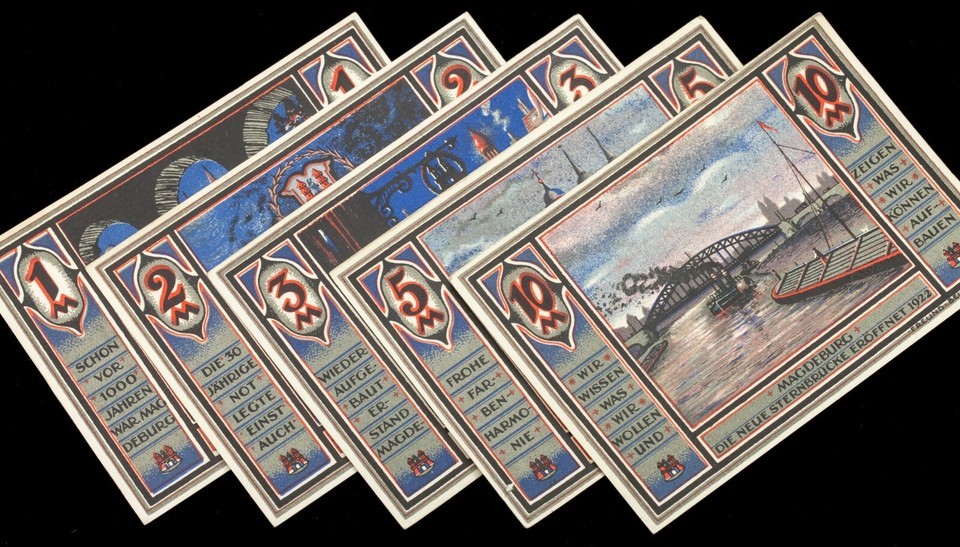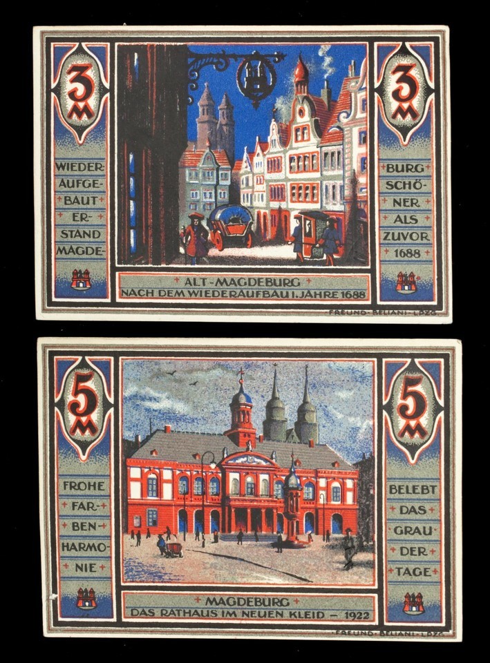 Ce lot comprendra 5 notes de notgeld individuelles de l'Etat allemand de Magdeburg apres la Premiere Guerre mondiale.
