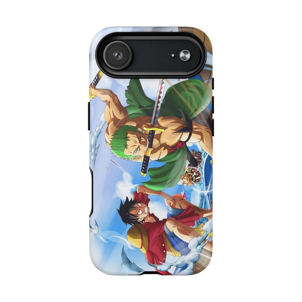 A durable and impact-resistant phone case featuring Luffy and Zoro from One Piece in an action sequence. The 3D wrap provides a full ink density wrap and image transfer, while the TPU silicone liner absorbs shock from impacts. Perfect for adult fans of One Piece looking to protect their phone in style. Ideal for birthdays, holidays, or any special occasion.
