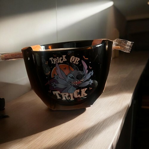 Disney Halloween Boo Stitch Ceramic Mug Chopsticks Set 20oz Soup Coffee Ramen