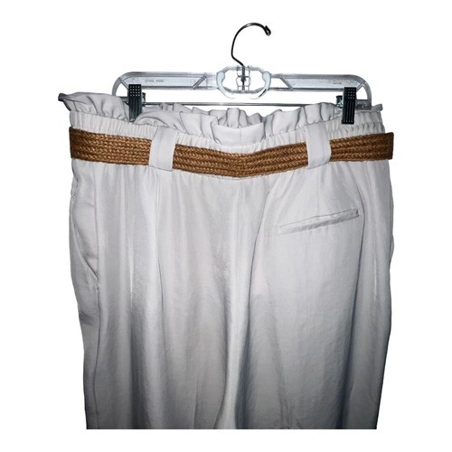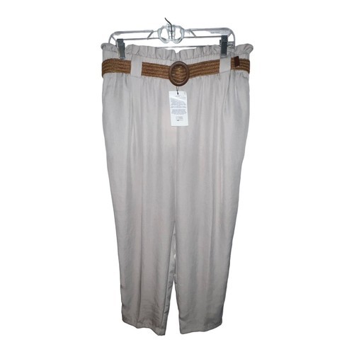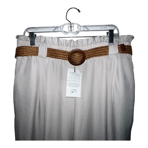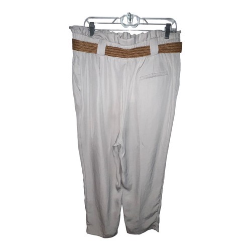 ZARA Tan High Waist Paperbag Cropped Pants Brown Raffia Belt Women Size XXL New
