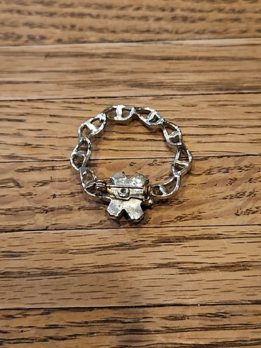 Silver Tone Circle Pink Flower Brooch Pin/Pinback 1.5'' Vintage