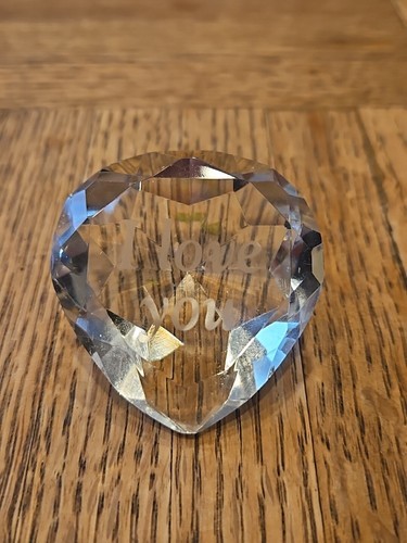 Engraved Crystal Heart "I Love You" Paperweight, 2'' Vintage