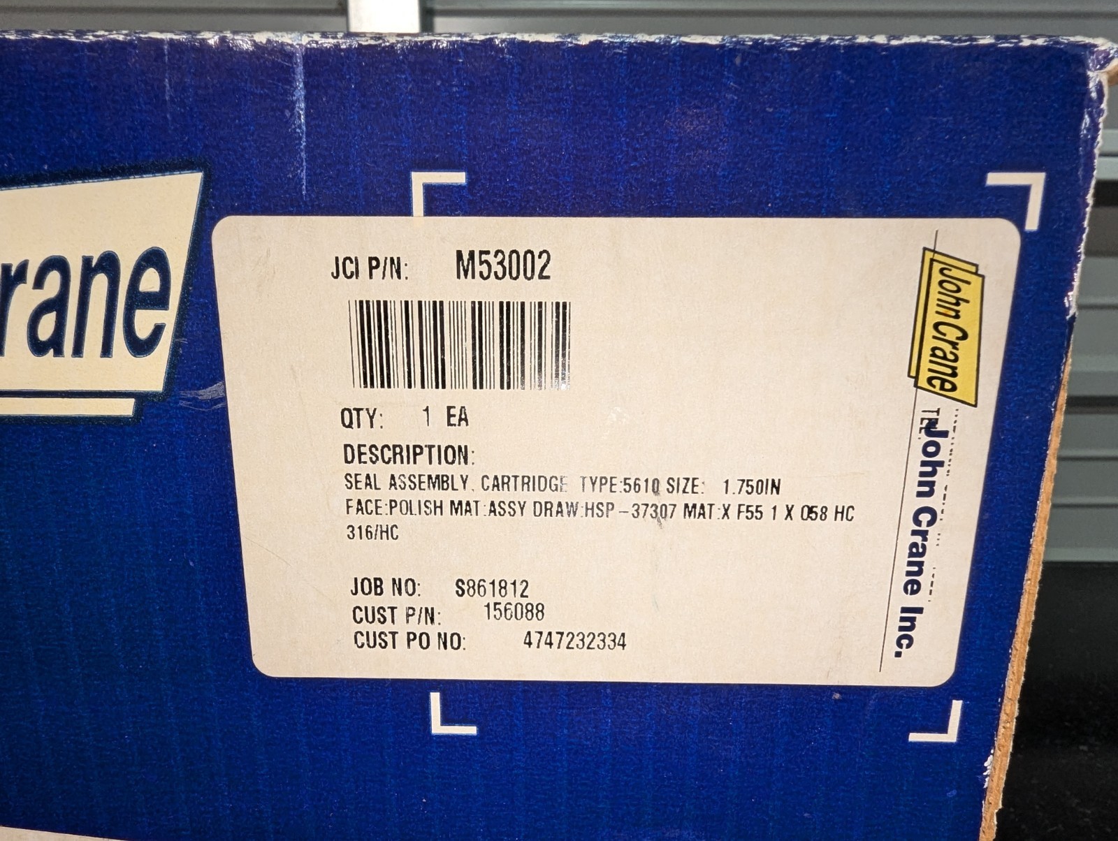 This John Crane M53002 EZ-1 Seal Assembly Cartridge is in new, unused condition and is guaranteed to be fully functional with a 30-day return policy. This item came from a local manufacturer that had surplus replacement inventory. Please feel free to contact us with any questions.