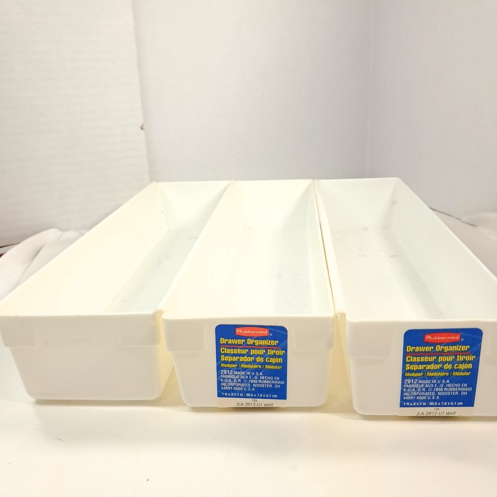 Vintage Rubbermaid Drawer Organizer set 3 white 2912 plastic bins containers