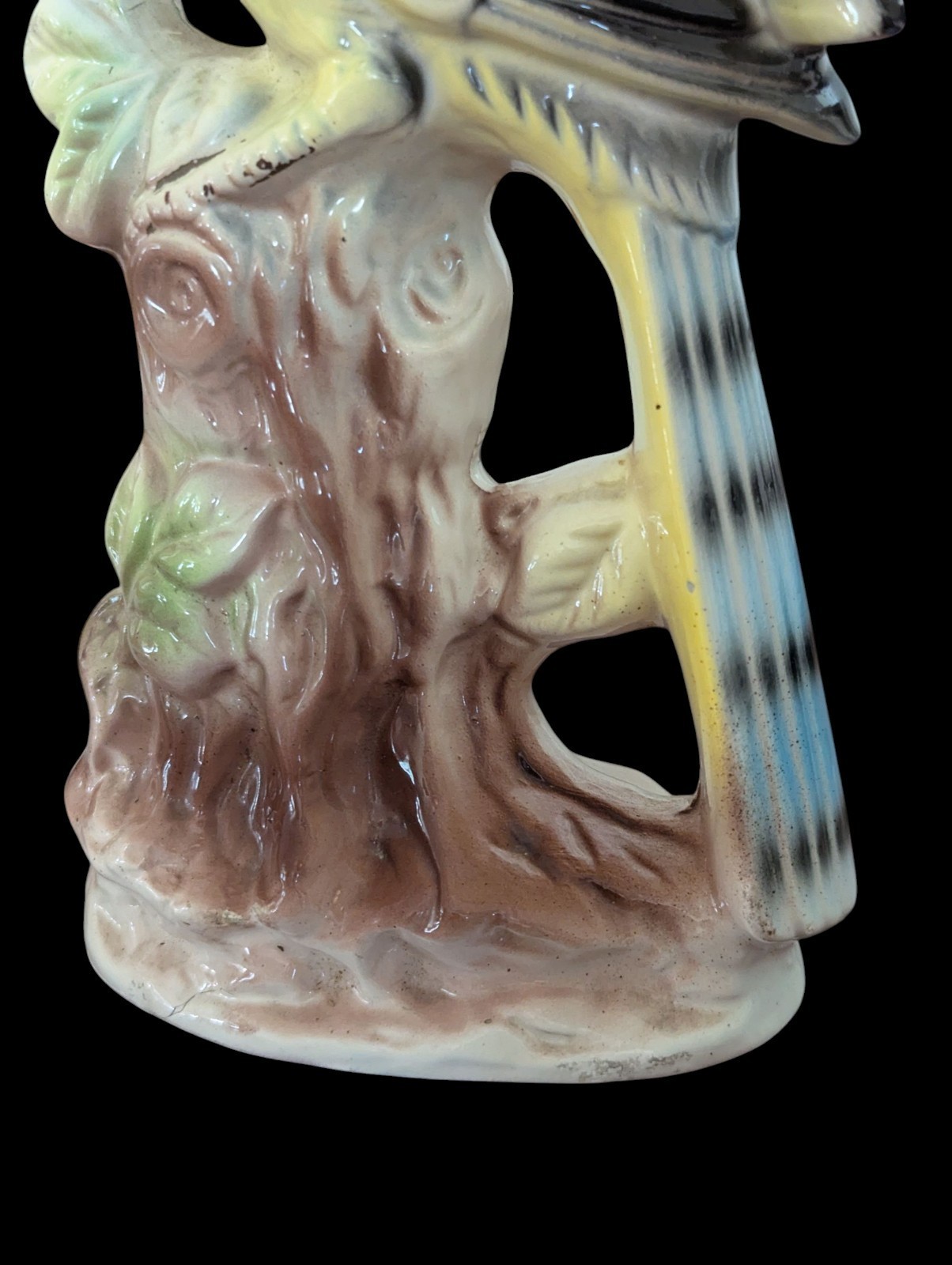 Vintage Porcelain Blue Jay Bird Figurine Japan Stump 10" Tall Leaves Singing