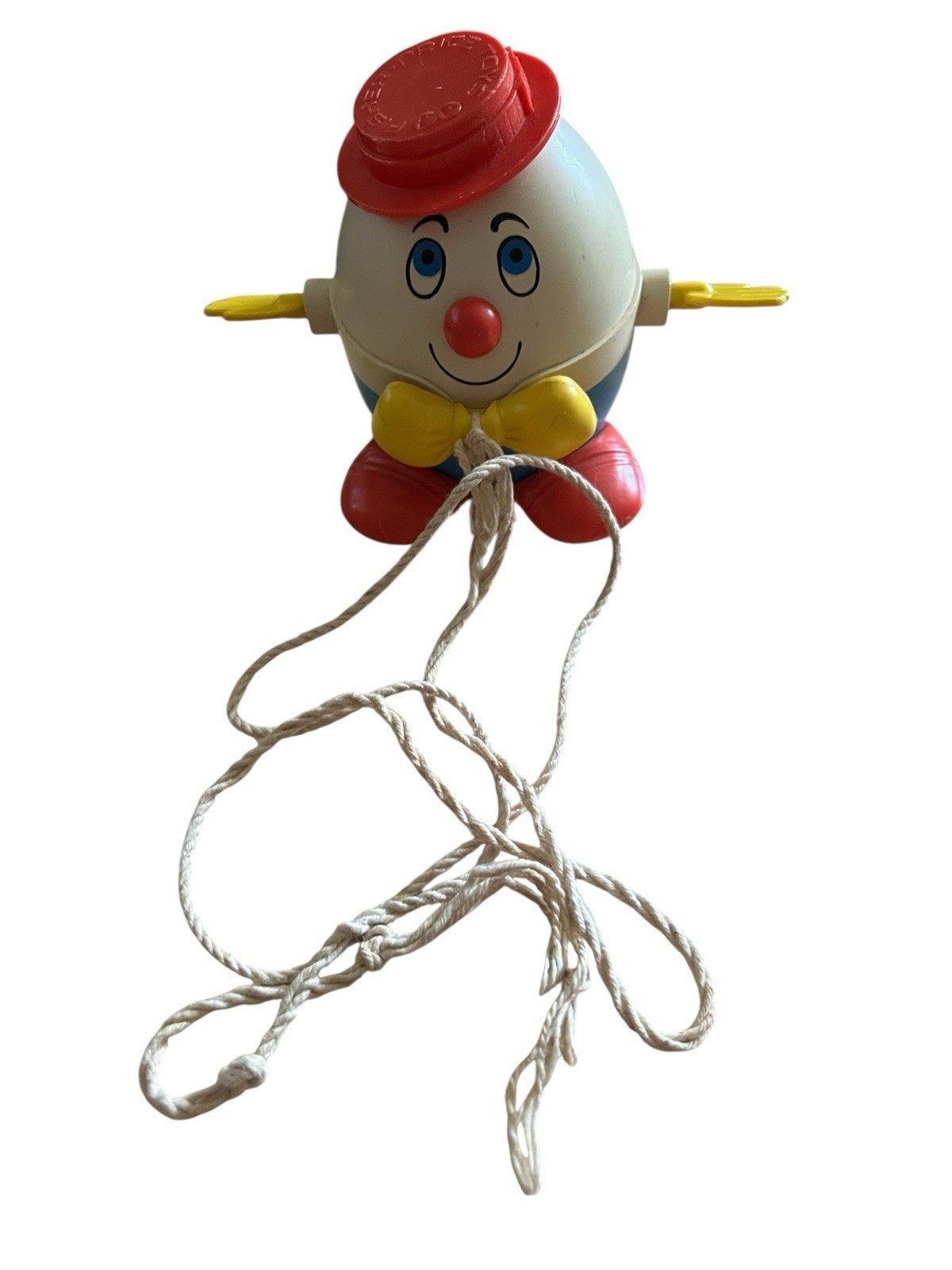 Vintage 1971 Fisher Price Humpty Dumpty #736 Pull Toy With Spinning Hands