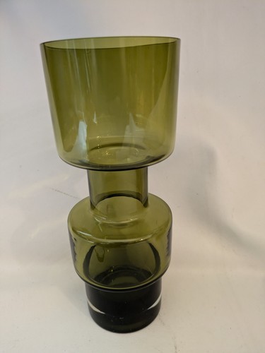 Questo splendido vaso vintage e un must per qualsiasi collezionista di vetro. Con un bellissimo design a cerchio verde e un motivo astratto, e sicuro di aggiungere un tocco unico a qualsiasi stanza. Il vaso misura 28 cm di altezza e 11 cm di larghezza, rendendolo la dimensione perfetta per la visualizzazione di fiori o come pezzo decorativo autonomo. Realizzato in Finlandia da Lasi Riihimaki, questo vaso originale di vetro artistico e soffiato a mano e vanta uno stile di produzione che e sia elegante che senza tempo. Il vaso viene fornito ed e ideale per la visualizzazione in una varieta di ambientazioni, dall'arredamento della casa allo spazio ufficio. Non perdere l'opportunita di possedere questo pezzo unico nel suo genere.