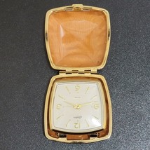 Vintage Linden Tan Clam Shell Leather Case Wind Up Travel Alarm Clock MCM Japan