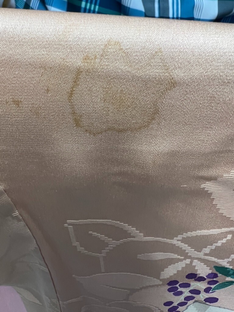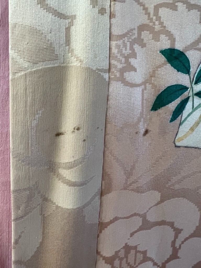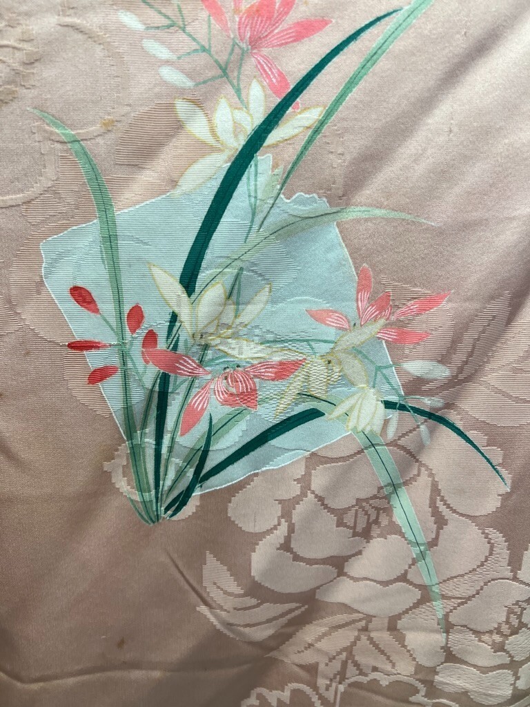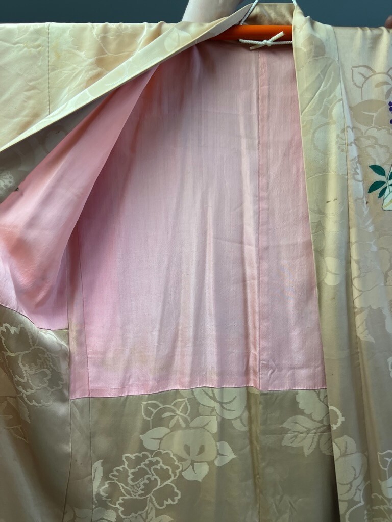 Japanese Kimono Robe Vintage Silk Peach Floral Light Staining