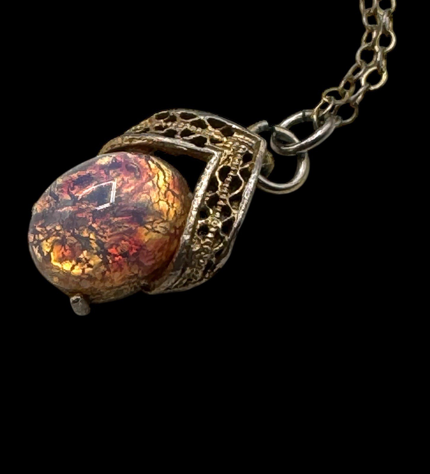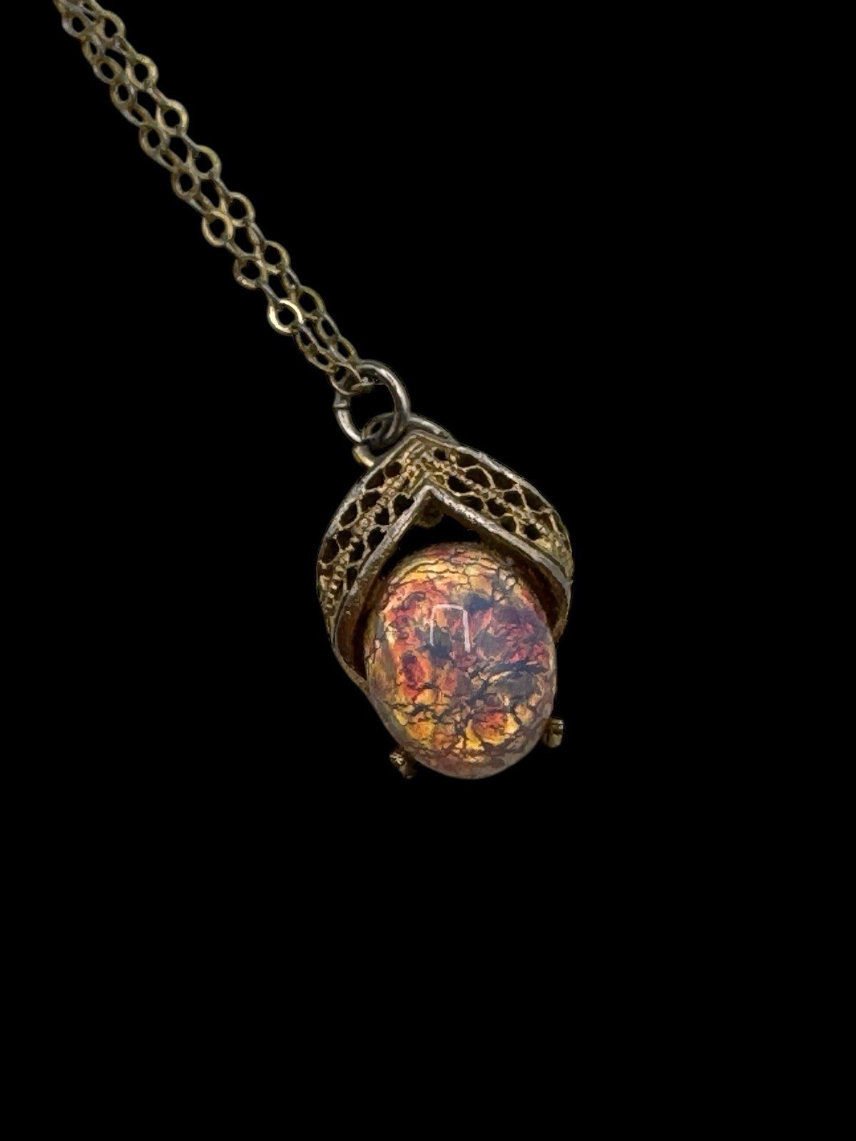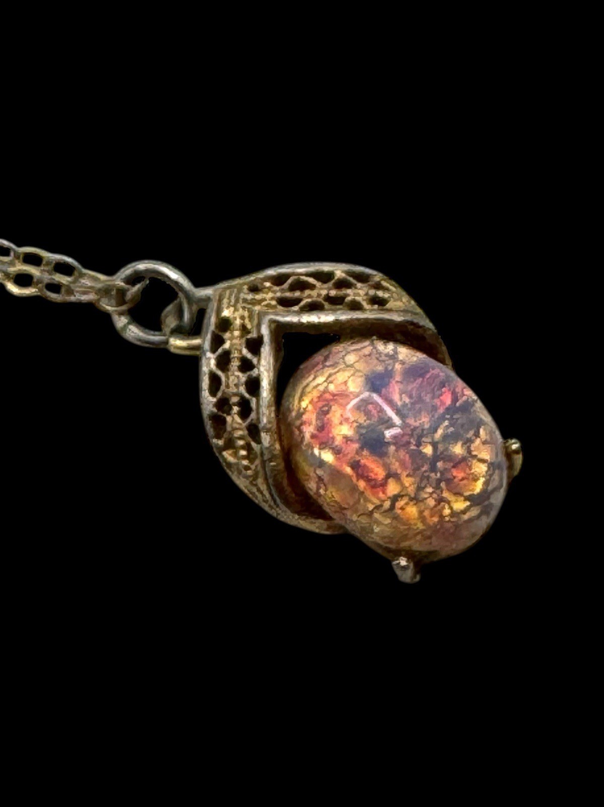 Vintage Foil Opal Pendant Gold Tone Chain and similar items