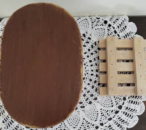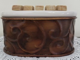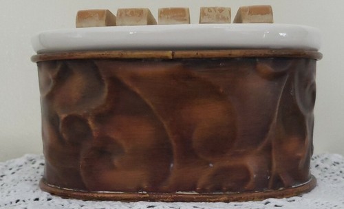 Soap dish is made of metal base ~ porcelain top with wooden slats for soap