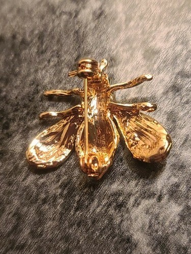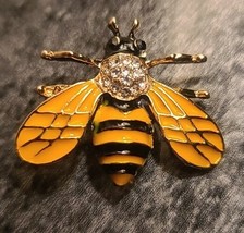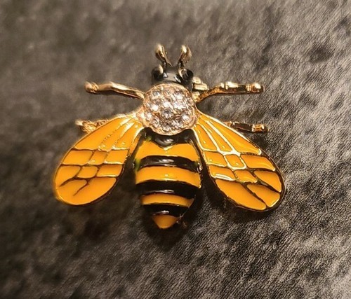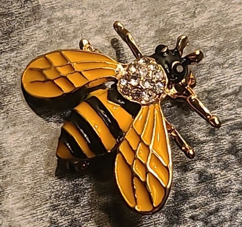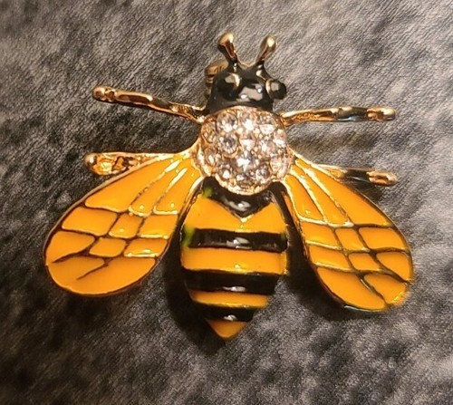 Handmade "Bee" Pin/Brooch ~ Yellow ~ Black ~ Clear Gemstones ~ Goldtone Jewelry