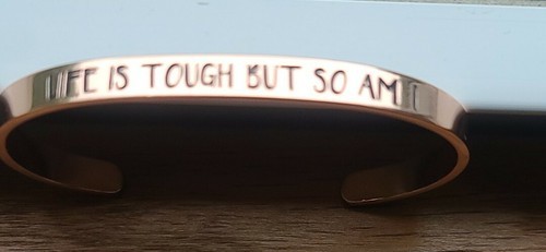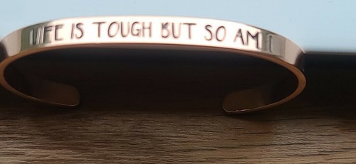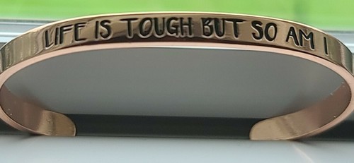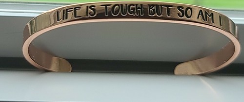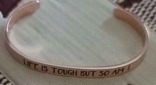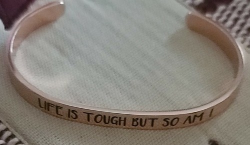 Bold statement ~ Bracelet says ~ in capital letters ~ "LIFE IS TOUGH BUT SO AM I"