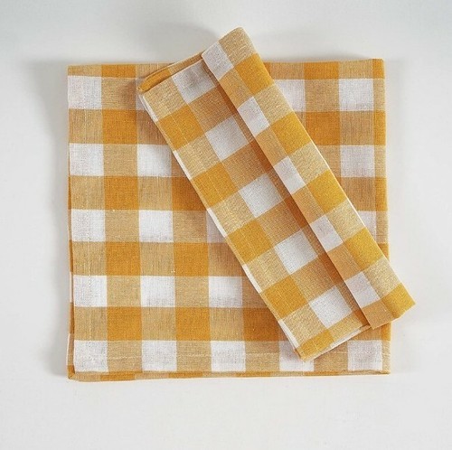 19" x 19" Dinner Napkins ~ Gold & White Check ~ 100% Cotton Fabric