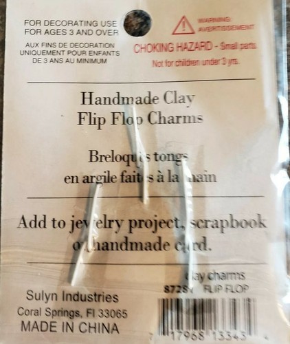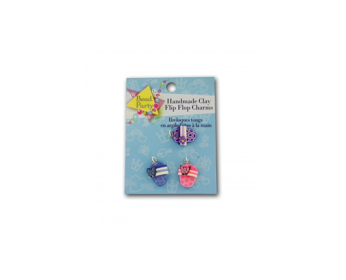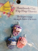 BEAD PARTY ~ HANDMADE CLAY ~ FLIP FLOP CHARMS ~ THREE (3) ~ PURPLE ~ BLUE ~ PINK