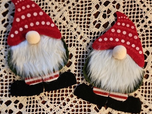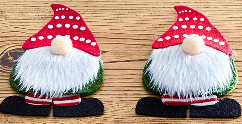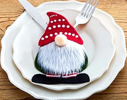 Two (2) Handcrafted ~ Fabric ~ Flatware Holders ~ Gnome Pattern ~ 4.5" x 7"