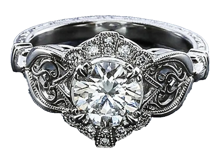 Handcrafted ~ Simulated Diamond ~ Embossed ~ Silver-Plated ~ Size 8 Ring