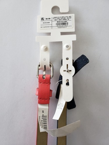 Cat & Jack Brand Girls' 2 Pack Belt Set Denim/Coral SMALL Multicolored