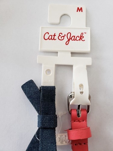 Cat & Jack Brand Girls' 2 Pack Belt Set Denim/Coral MEDIUM Multicolored