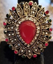 HURREM SULTAN ~ RED ~ Turkish Goldtone Ring with Gemstones ~ Size 7 ~ Jewelry