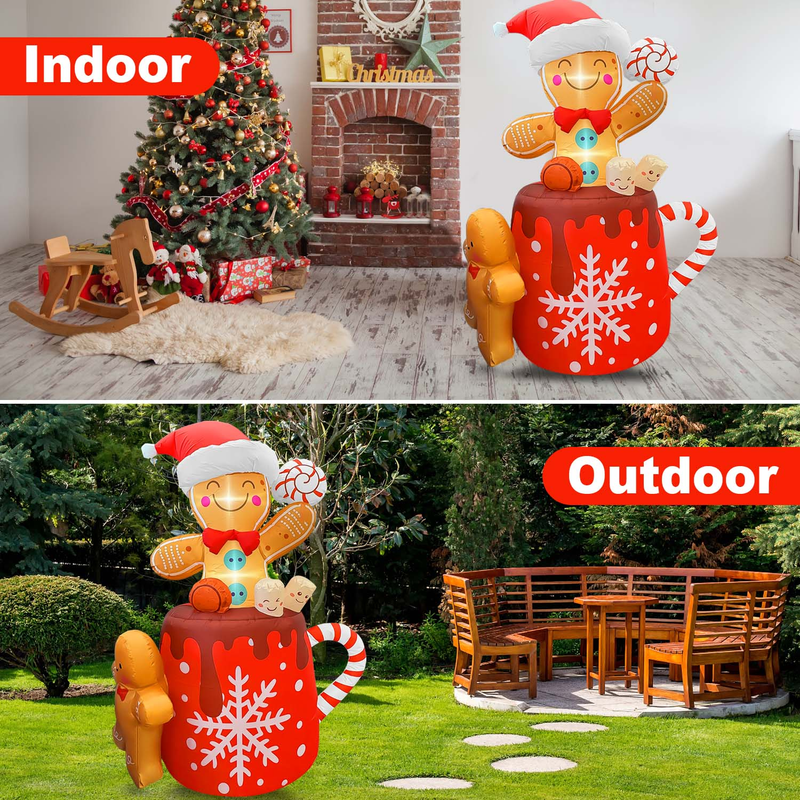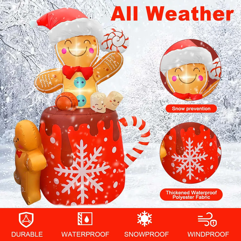 Eye-Catching Design: Make your Christmas decor more enjoyable with GVDV 6-foot-tall giant gingerbread man inflatable. It's a guaranteed hit that will add charm and create a festive atmosphere, perfect for both indoor and outdoor settings.