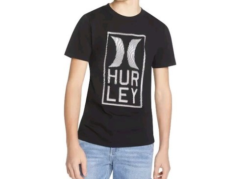 Solid Black Tee ~ Short Sleeve ~ Crewneck ~ HURLEY Graphic Design Across Chest Area ~ 60% Cotton ~ 40% Polyester