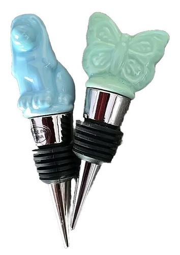 2-Pioneer Woman Wine Bottle Stoppers 1-Butterfly Insignia & 1-Ree's Dog Charlie