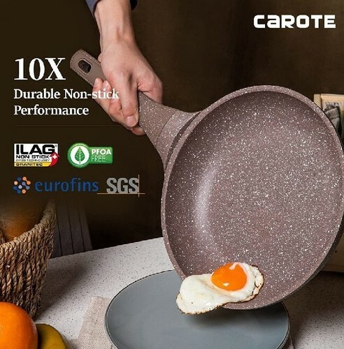 CAROTE ~ 11" Frying Pan ~ BROWN Granite ~ ALL Stovetops ~ Non-Stick ~ Aluminum