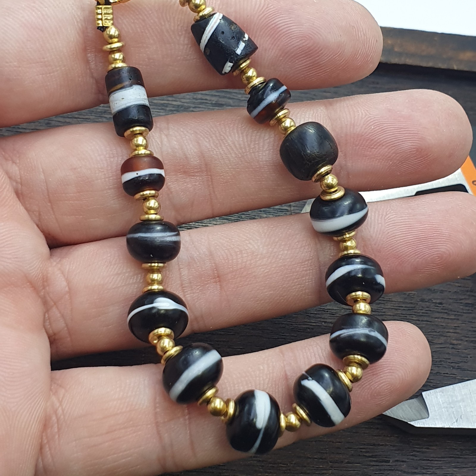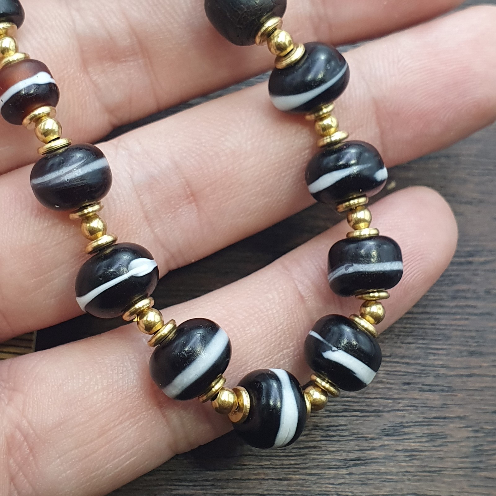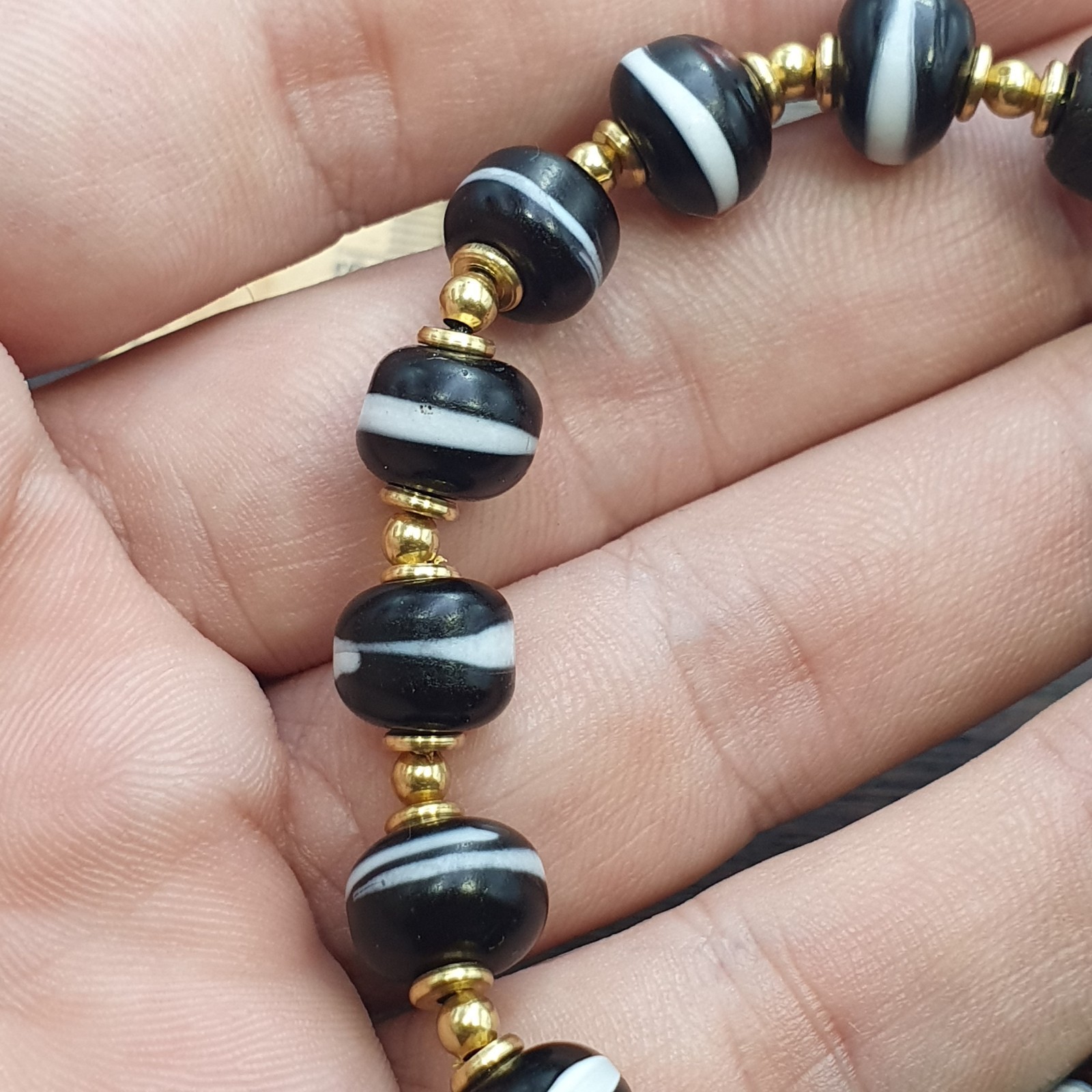 Antique one Line Black and White Glass beads beaded bracelet #jn-br3