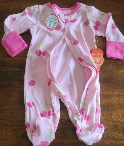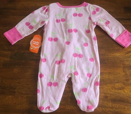 Wonder Nation One Piece Sleeper ~ Pink Cherry Pattern ~ 0/3 Months ~ Zip Closure