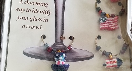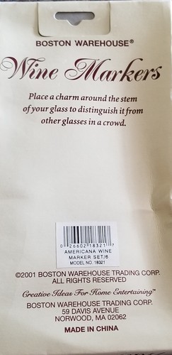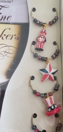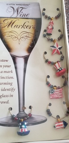 BOSTON Warehouse, Set of 6, Patriotic, Red, White & Blue Wine Markers, NEW