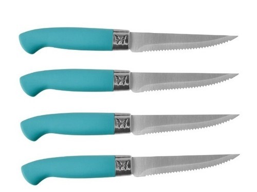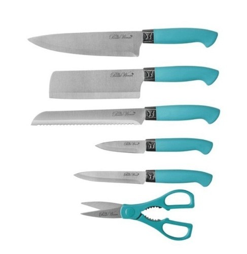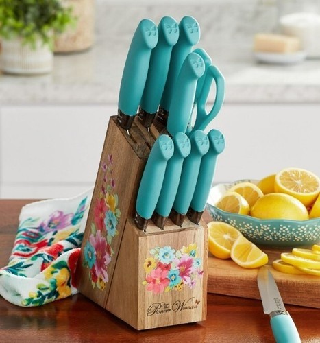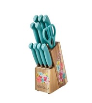 Pioneer Woman ~ 11-Pc. Set ~ Stainless Steel Knives ~ ACACIA Wooden Block ~ TEAL
