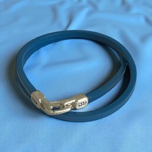 David Yurman .925 Sterling Silver Streamline Double Wrap Blue Leather Bracelet