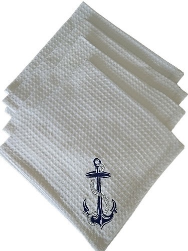 FOUR (4) Handcrafted Dinner Napkins ~ Anchor on a Waffle Pattern ~ Cotton Napkin