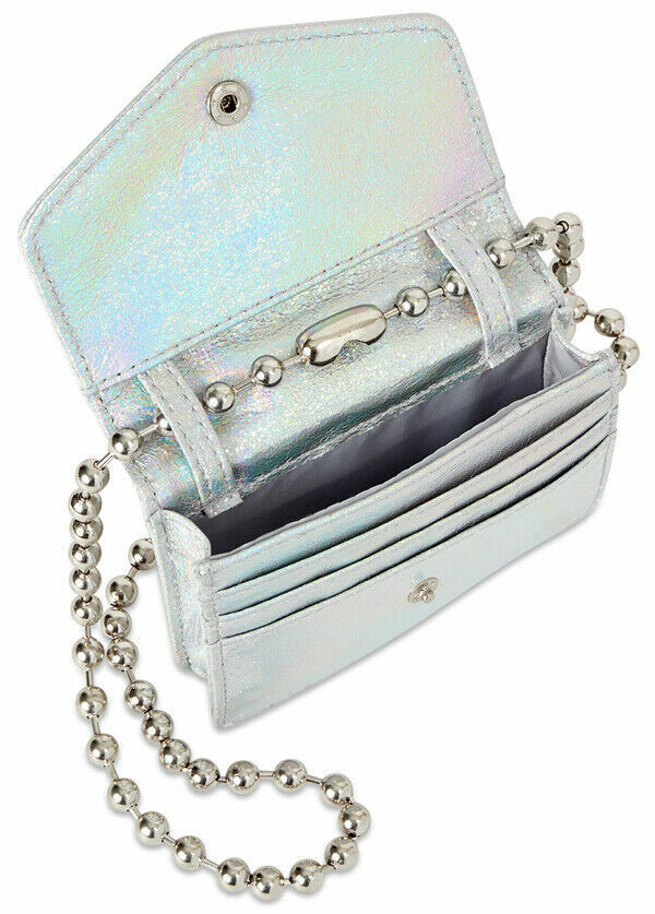 Silver Wallet Convert to Purse/Handbag w/Micro Snap Chain Strap Crossbody Bag