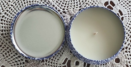 Candle tin measures approximately 3.5" diameter x 2.25" tall