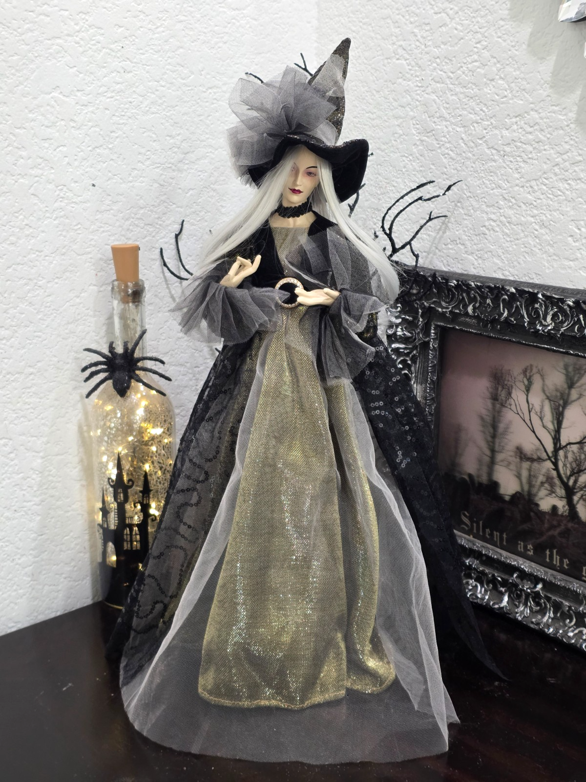 Halloween Witch Black Gold Dress Figurine Statue Tabletop Decor 17"