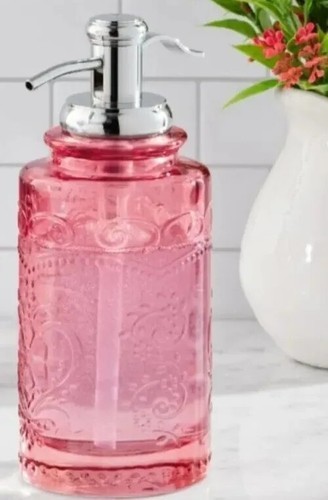 Pioneer Woman ~ Embossed Vintage Style Glass ~ AMELIA ~ CORAL ~ Soap Dispenser