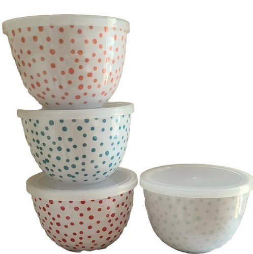 Four (4) prep bowls Four (4) coordinating ~ plastic ~ snap on lids