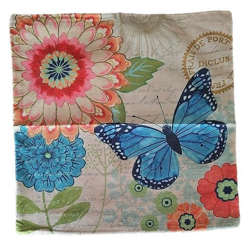 Handcrafted ~ European ~ Retro ~ Butterfly & Floral ~ 17.7" Pillow Cover ~ (1)