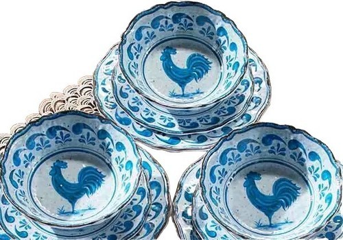 Set of Four (4) Melamine Bowls ~ Country ~ Rooster ~ Paisley ~ Blue & White