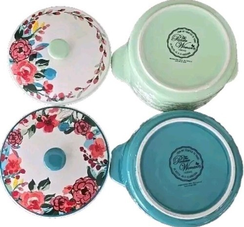 Two (2) Pioneer Woman ~ PRAIRIE SIGNATURE ~ Mini Ceramic Casseroles w/Lids