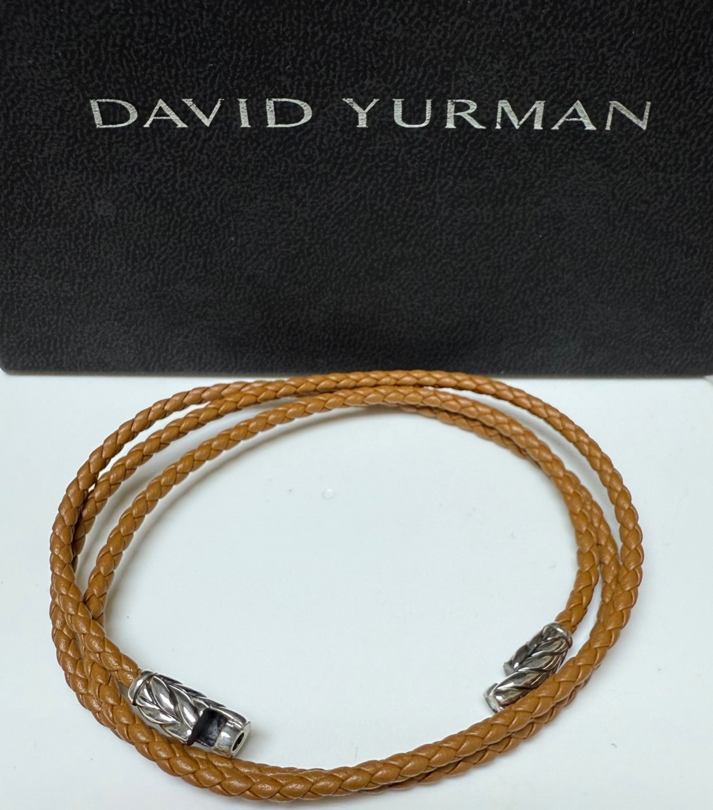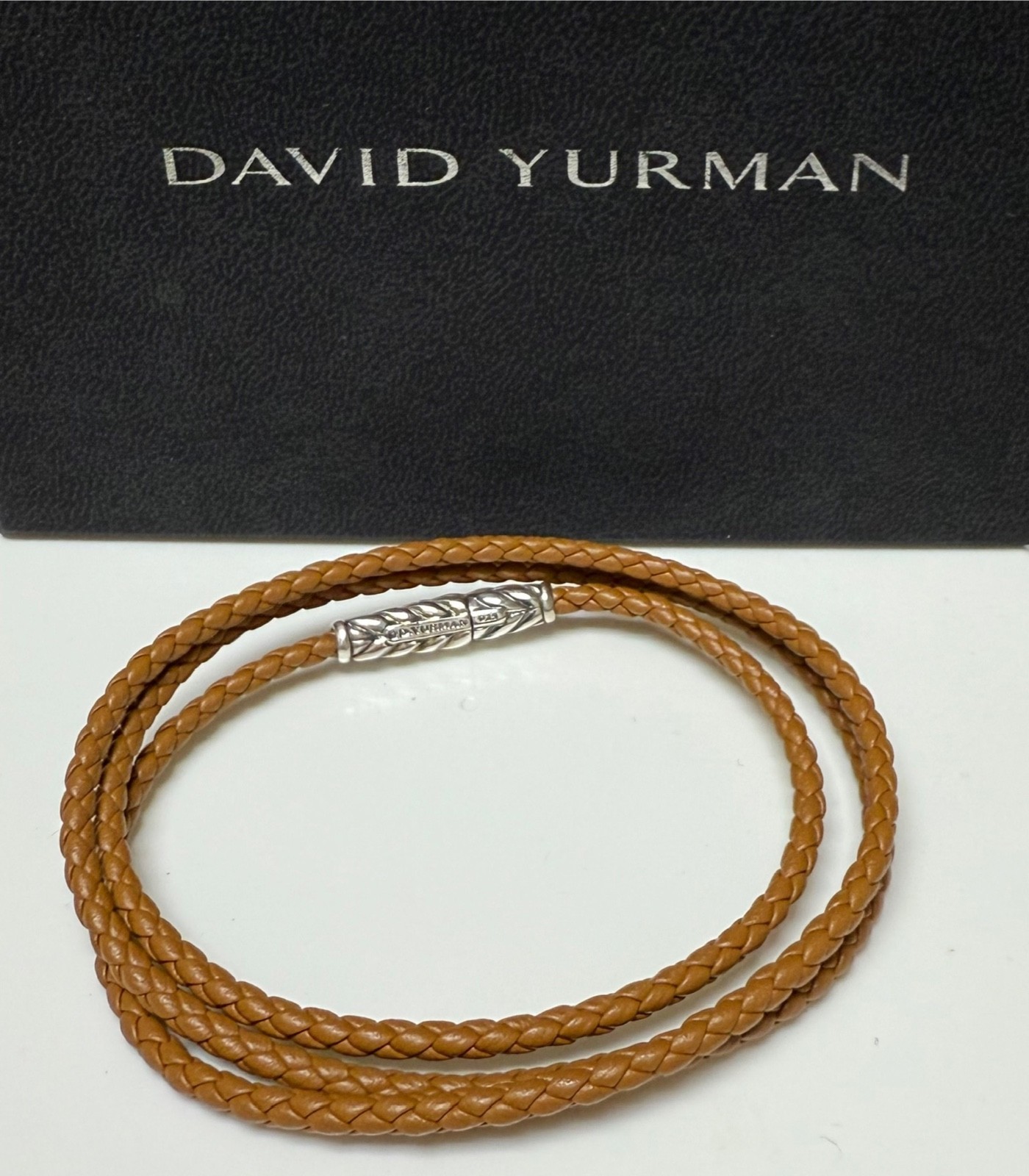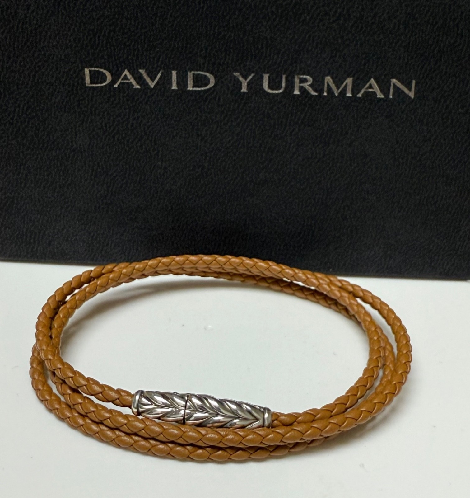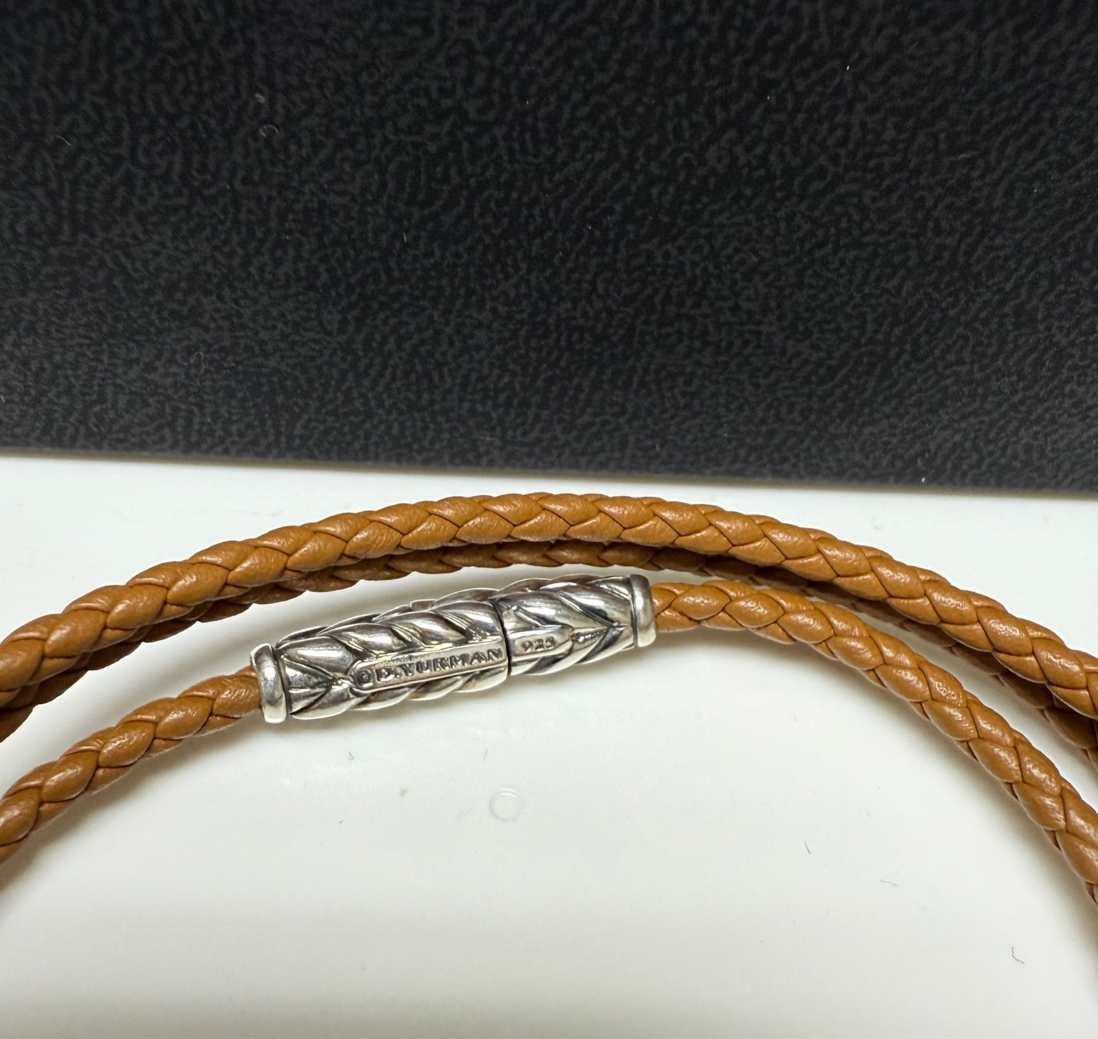 David Yurman Sterling Silver Chevron Triple Wrap Light Brown Leather Bracelet L