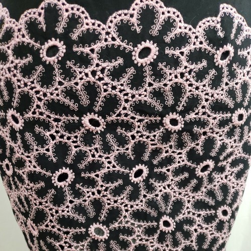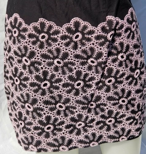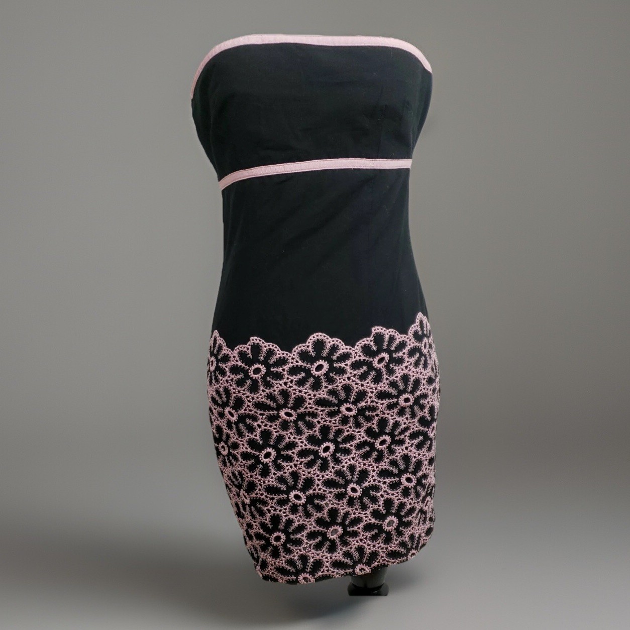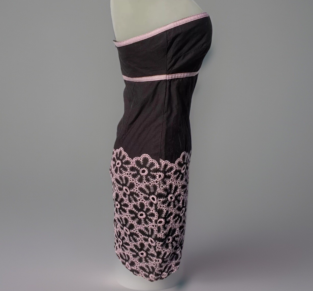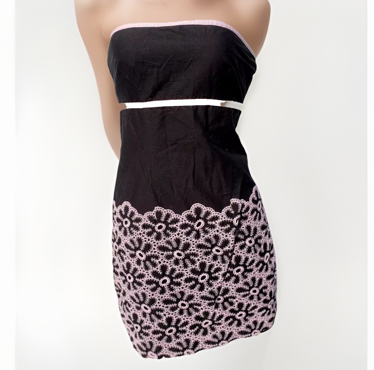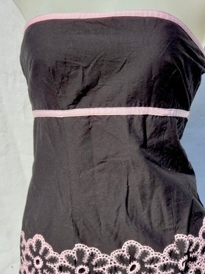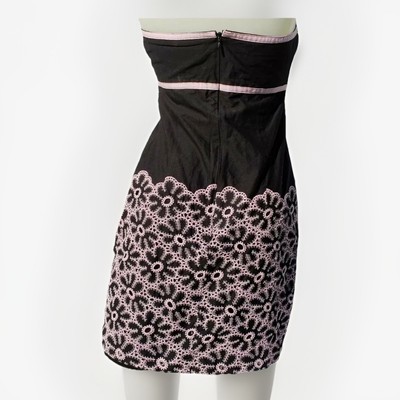 Cynthia Steffe Dress Sz S Strapless Mini Empire Waist Black Pink Eyelet Border