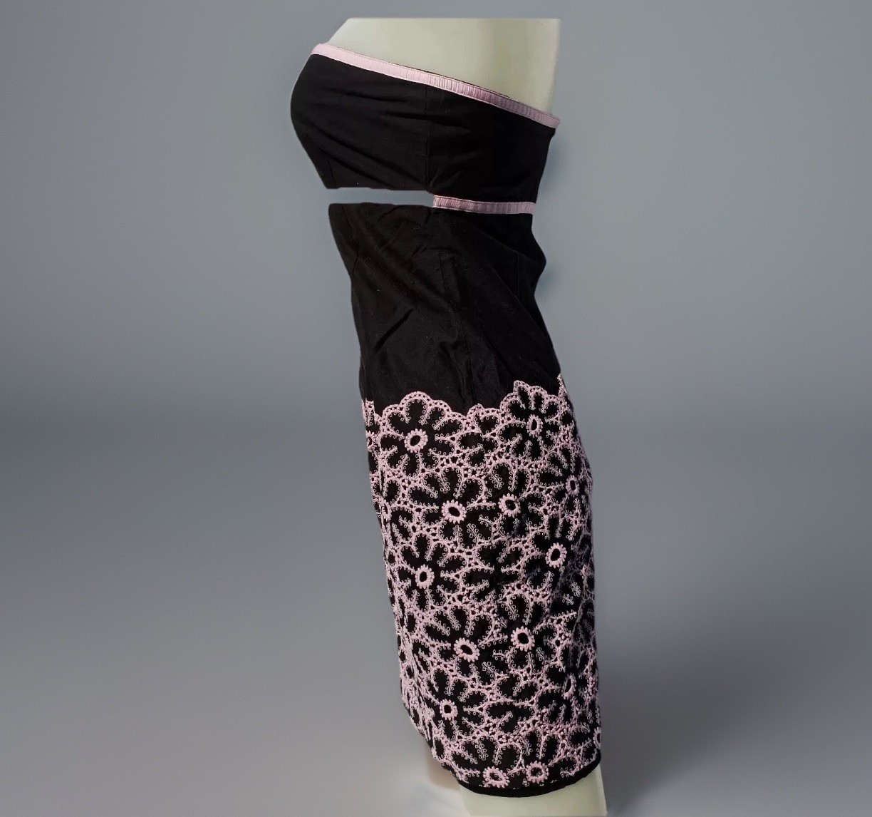 CYNTHIA CYNTHIA STEFFE BLACK STRAPLESS EMPIRE WAIST with Embroidered flowers and Laser Cut (eyelet) DRESS