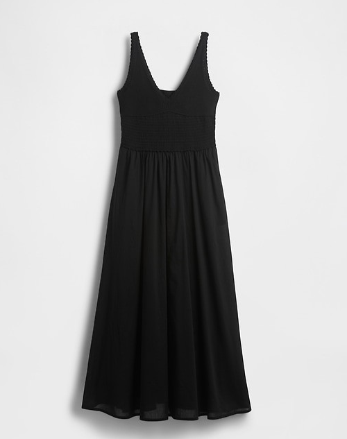 GAP Crochet Knit Tank Mixed Media Cotton Voile Skirt Maxi Dress SZ XS Black NWT