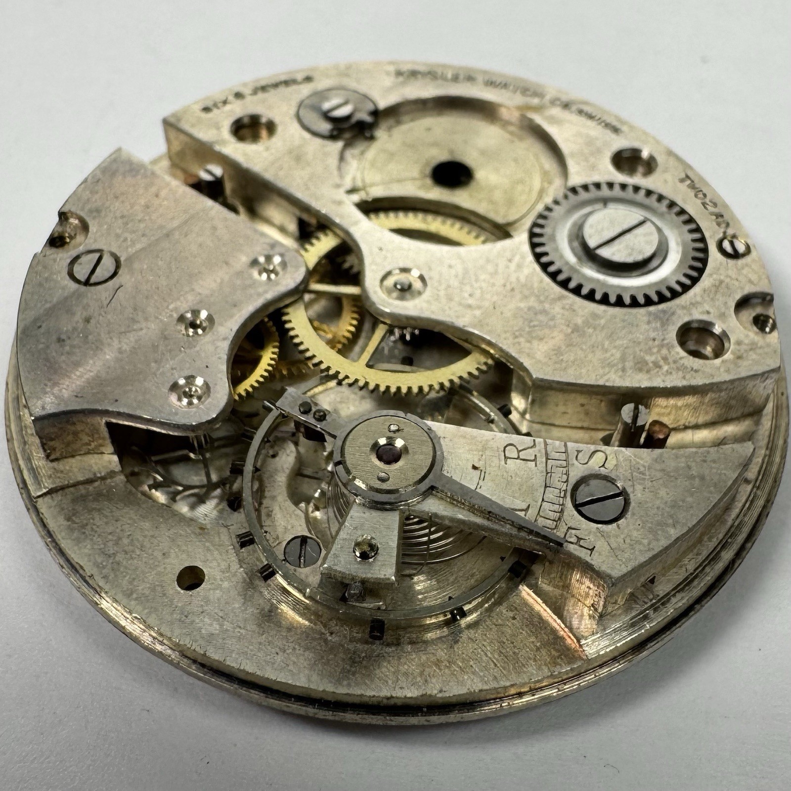 Krysler Pocket Watch Swiss Pocket Watch Movement 6 Jewel For Parts Not Working